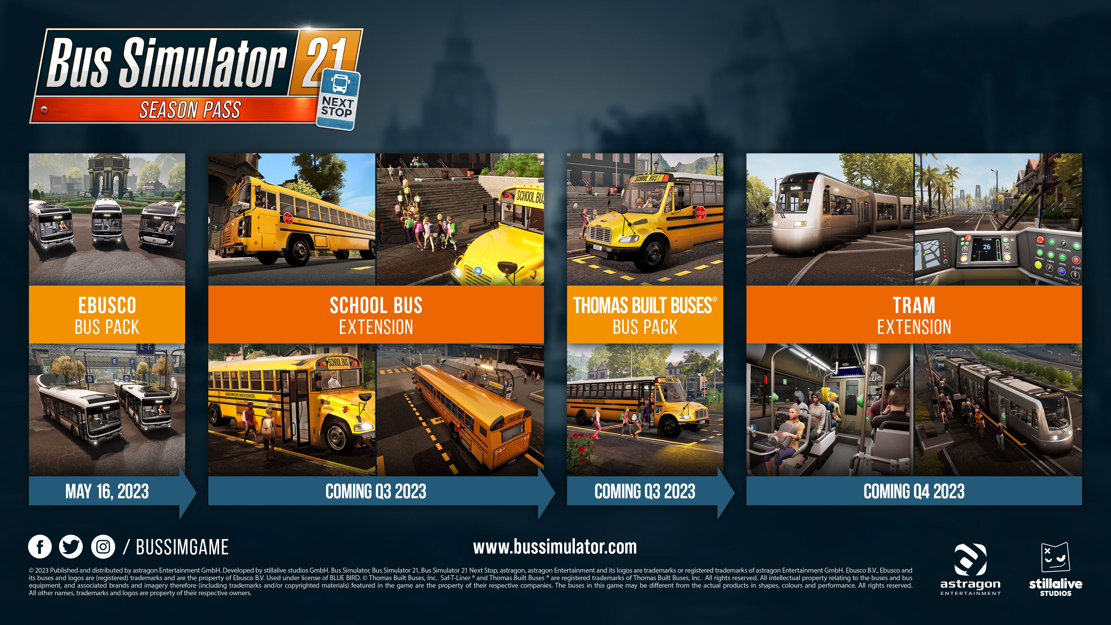 Alle diese Inhalte werden bei der Veröffentlichung automatisch kostenlos und herunterladbar für Besitzer des Bus-Simulator 21 Next Stop - Season Pass sein. Bleibt dran, um in Zukunft weitere detaillierte Informationen zu erhalten. Der Season Pass wird zu einem Preis von 24,99 EUR (UVP) veröffentlicht werden.